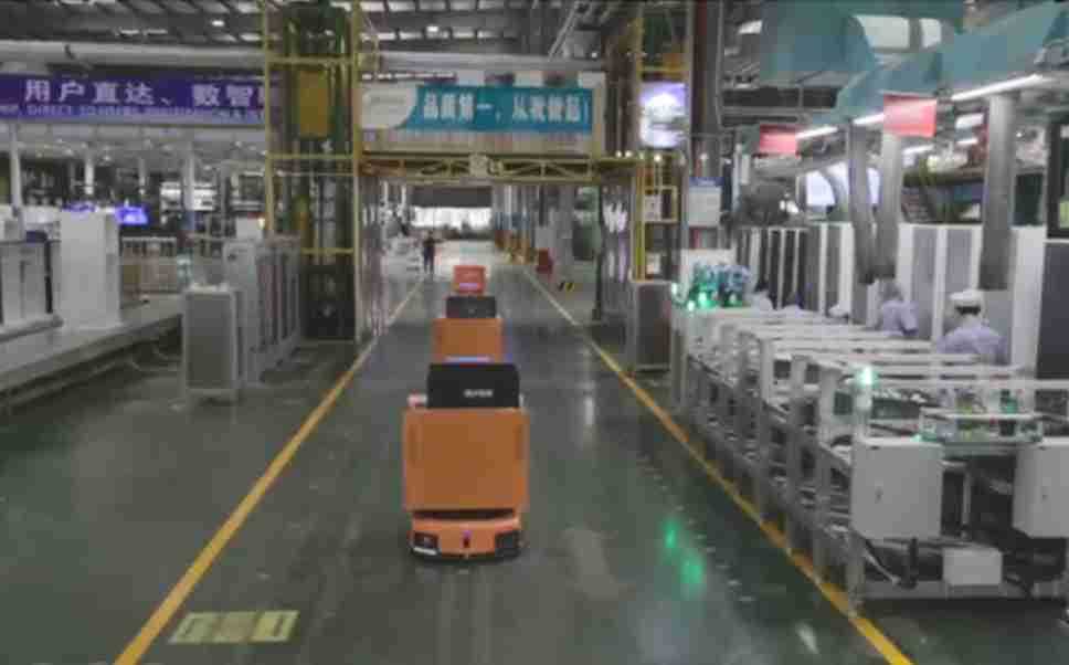 为车载冰箱物流配送打造的智能解决方案,,包含产中物流通过潜伏举升AMR搬运至线边,,产后成品物流智能仓储,,,流程包含产中物流智能齐套入库,,,线边安灯叫料AMR智能配送至线边,,,,成品入库、、、出库,,通过无人堆高车机器人,,,,智能仓储管理替代人工作业管理,,,,实现更高存储、、更高效率、、、更具柔性化的解决方案。。。